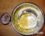 Смешиваем муку, с тертым сыром, желтком, растительным маслом, солим, добавляем пиво.