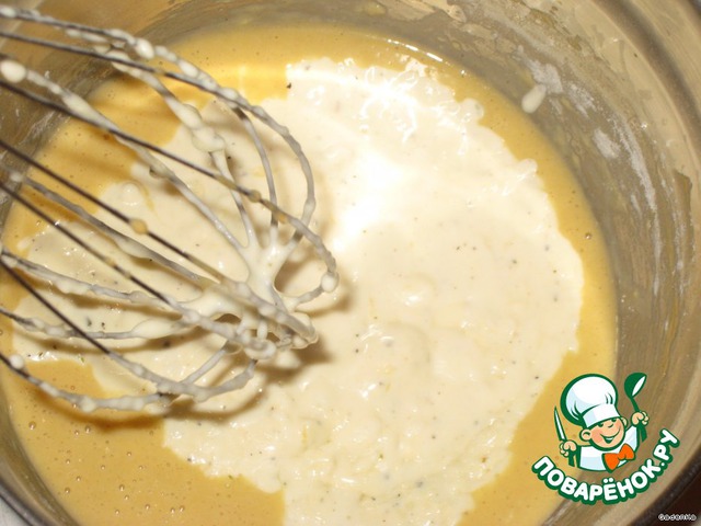 Яйцо взбить, добавить горчицу и муку, перемешать.