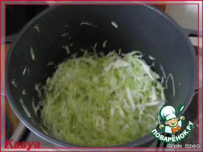В следующий раз я возьму больше капусты, самая вкусная была именно она... Так что берите килограмм, не ошибетесь. Капусту шинкуем тоненько, закидываем обжариваться в казан с растительным маслом. Точнее, это нечто среднее между обжаркой и тушением получается.