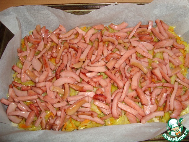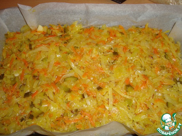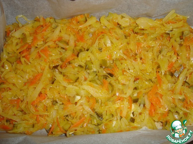Сверху снова слой капусты, который хорошо разравниваем, прижимая слои.