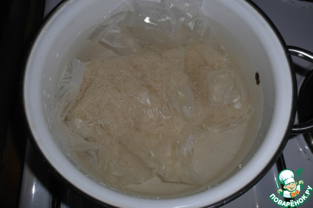 1. Отвариваем рис до полуготовности и откидываем на дуршлаг.
