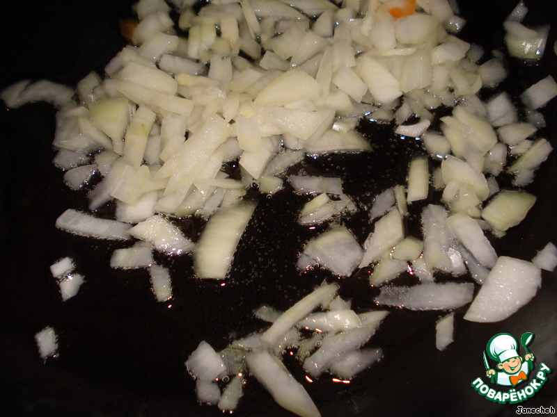Лук мелко нарезать. Спассеровать в небольшом количестве масла до мягкости лука.