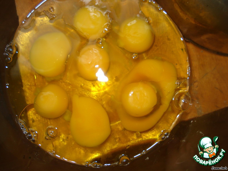 Смешайте в отдельной чашке муку, разрыхлитель, добавьте к яичной смеси. Хорошо размешайте.