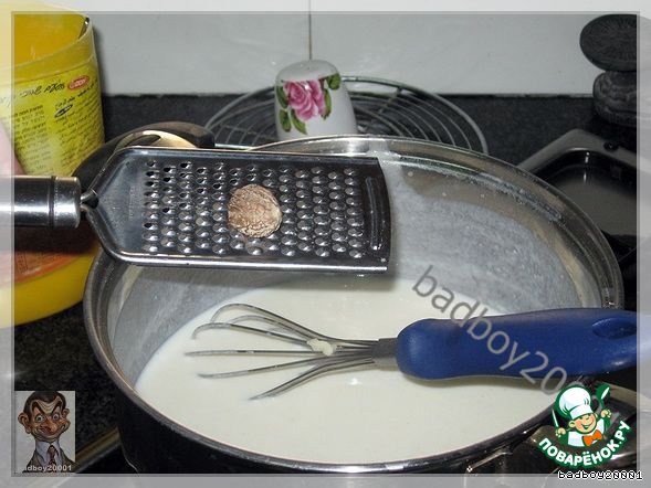 Возьмем кастрюльку, и приготовим соус бешамель, мы все прекрасно знаем как его готовить, и я не думаю