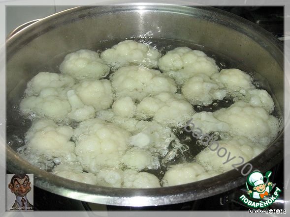 Когда вода закипит , отвариваем первой цветную капусту,не более 3-4 минут