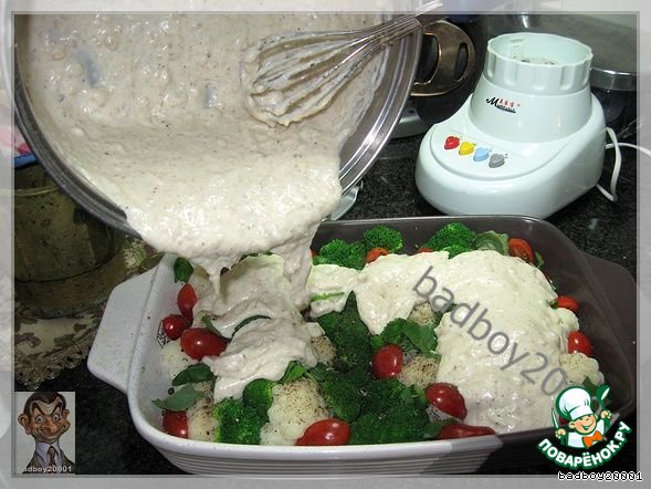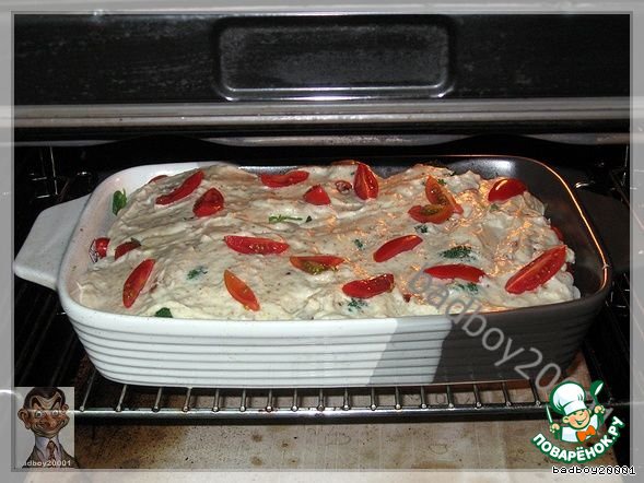 Соус не должен быть слишком густым, ему еще есть время готовиться в духовке 45-50 минут, при температуре 180 градусов.