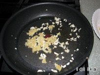 Имбирь и чеснок выложить на сухую разогретую сковороду и обжаривать в течении 1 минуты.
