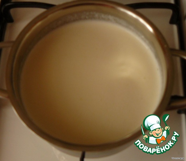 Варим соус: В кастрюльку вылить сливки и натереть сыр.