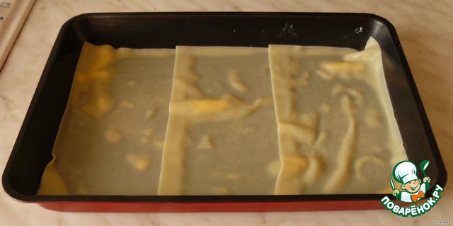 Покрыть листами лазаньи. Итак еще 2 раза.