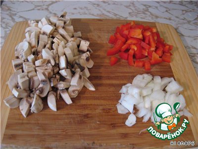 Сладкий перец, лучок и шампиньоны обжарить по отдельности.