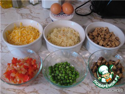 | Рисовая запеканка с куриной грудкой, грибами и овощами.............. |