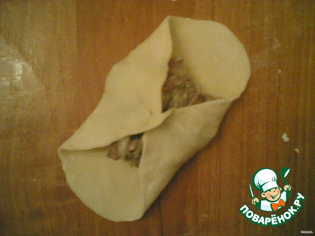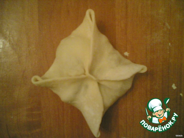 Затем опять с двух сторон захватить край теста и соединить все четыре "угла".