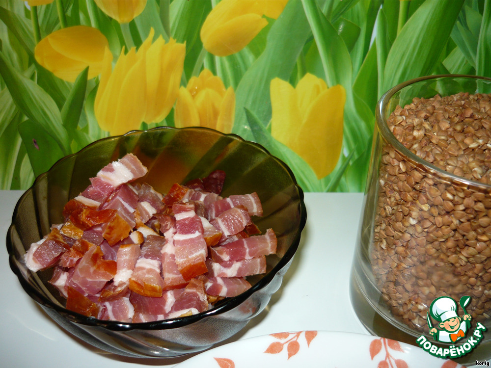 Гречку отмеряю кружкой, т.к. в процессе она еще понадобится для кипятка.