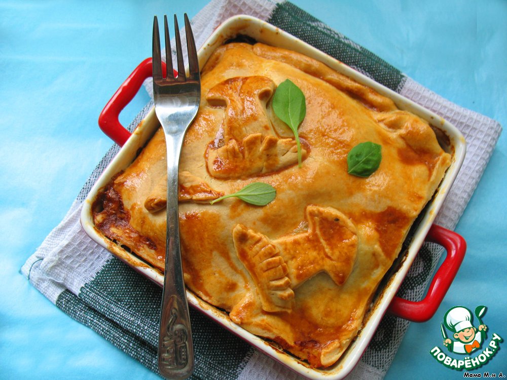 Запеканка из картофеля, курицы и грибов под рубленым тестом