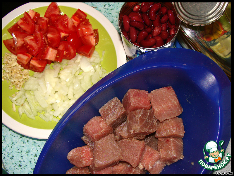 С фасоли слить жидкость.