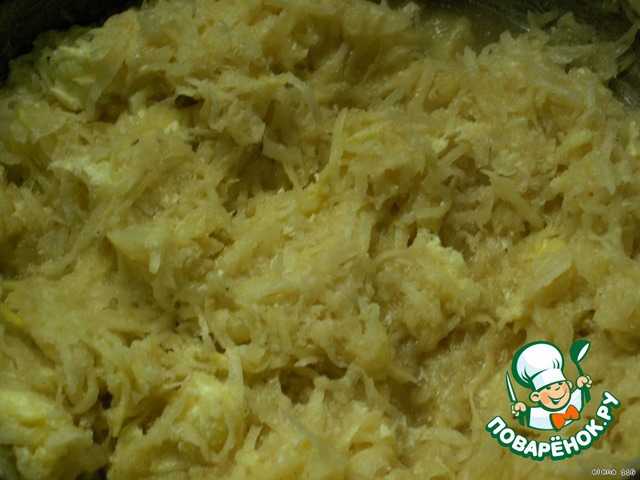 Картофель и кабачки натереть на тeрке, посолить. Отжать руками, удалить жидкость.