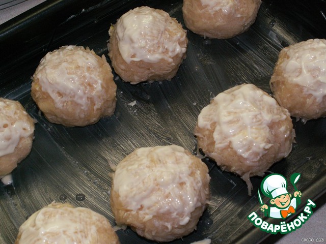 Смазать шары сверху майонезом.
