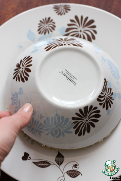 Миску с кус-кусом переворачиваем на тарелку и он формируется аккуратной горкой.