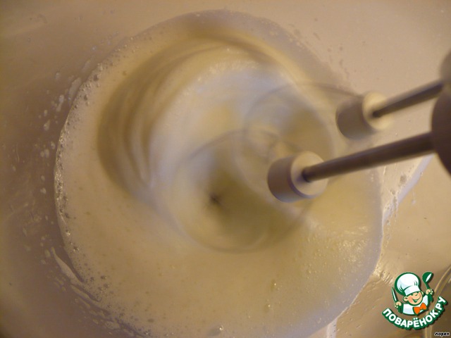 Белки взбиваем в крепкую пену и добавляем в последнюю очередь. Перемешиваем снизу вверх до получения пышной массы.