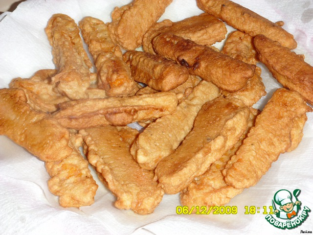 Затем морковь обвалять в оставшейся муке (забыла в начале сделать), затем, обмакивая в тесто-кляр,