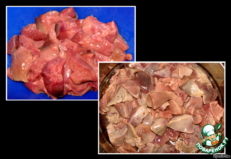 Горячей водой от картофеля я залила нарезанную на мелкие кусочки печень, перемешала.