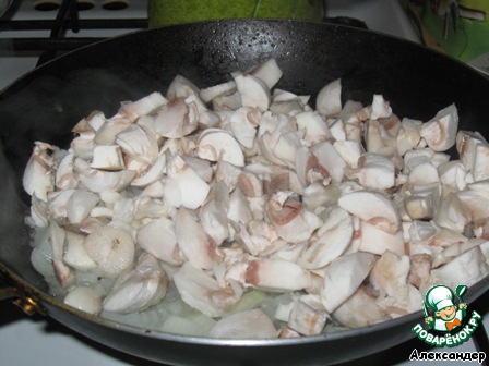 Яйца отварить вкрутую. Разрезать вдоль пополам и вынуть желток. Грибы с луком и желтками перемолоть в блендере, добавить сметану (или майонез), соль, щепотку молотого мускатного ореха (можно и без него). Получается очень вкусная паста, вполне применимая в других блюдах.