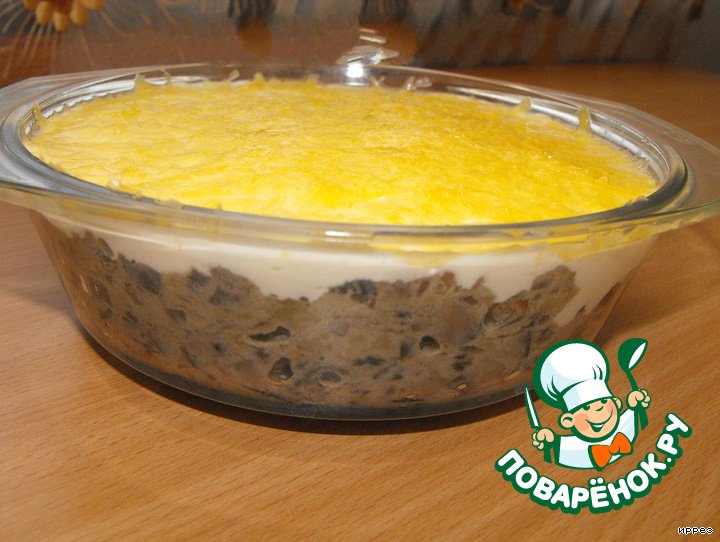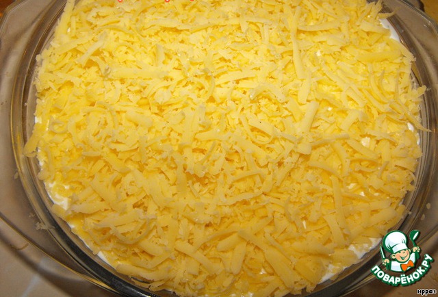 Посыпаем тёртым сыром. Ставим в микроволновку до расплавления сыра.