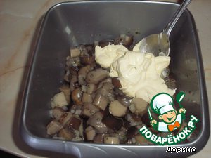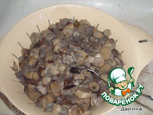 Как грибы сварятся, откинуть на дуршлаг, чтобы стекла жидкость.