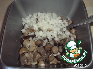 Грибы почистить, промыть, произвольно нарезать и отварить в подсоленной воде до готовности (при варке можно добавить лавровый листочек)