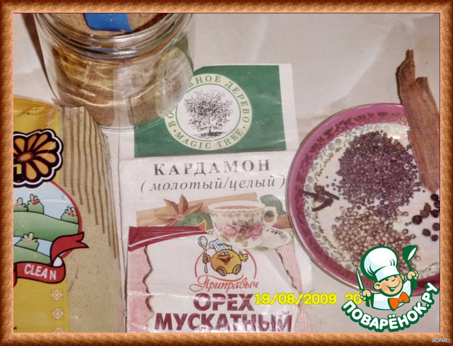 Приготовьте гарам-масалу: 1/2 ч.л. обычного тмина, 1/4 ч.л. семян кардамона, 1,5 см палочки корицы раскрошенной, 1/2 ч.л. семян индийского тмина (джира), 1/2 ст.л. семян кориандра, 3 гвоздики, 6 горошин черного перца, 1/4 ч.л. натертого мускатного ореха - всего получается 3 ст.л. пряностей.