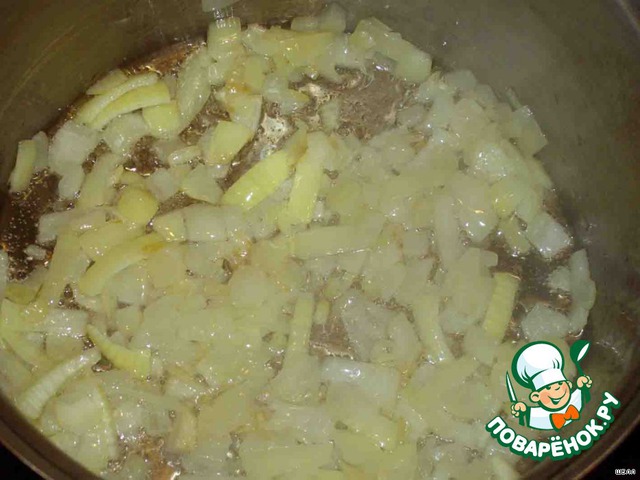 Мелко нарезаем лук и обжариваем его на растительном масле.
