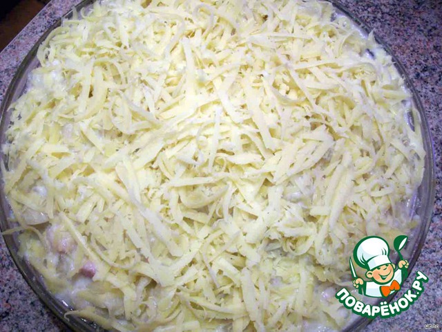 Сверху все посыпаем тертым сыром(оставшейся половиной).