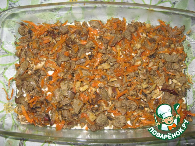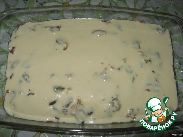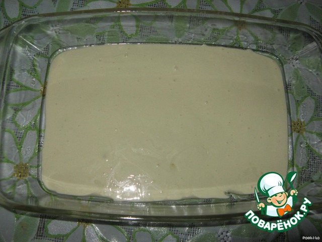 В форму для выпечки, смазаную маслом, выливаем половину теста.