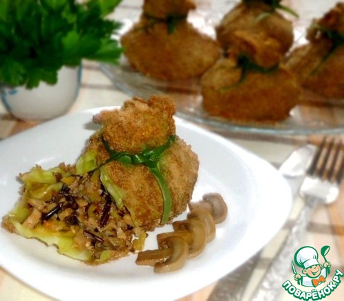 | Капустные мешочки, запеченные в панировочных сухарях с начинкой из дикого риса, овощей, грибов, мясным фаршем и без него. Очень вкусно! |