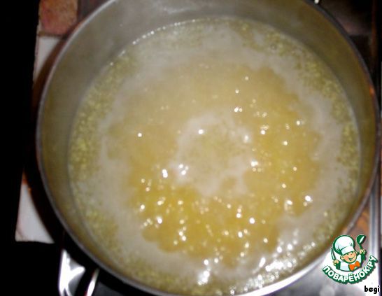 В кипящую соленую воду добавить оливковое масло (2ст.л.), засыпать кукурузную крупу.
