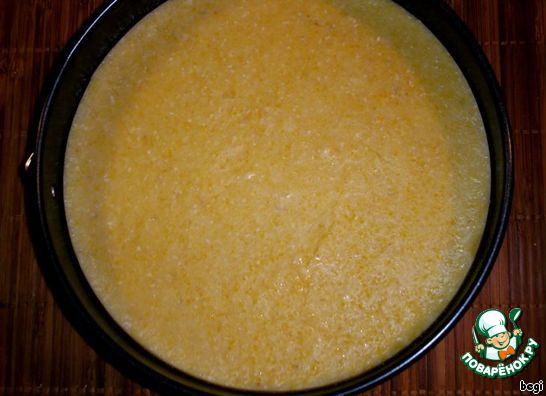Сваренную поленту выложить в смазанную оливковым маслом форму.
