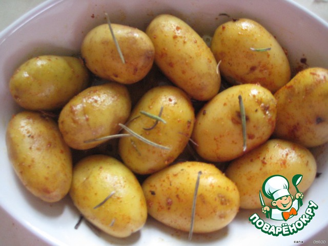 | Один из множества вариантов приготовления картофеля в "мундире", т. е. неочищеного. Сочный, ароматный с хрустящей корочкой! |
