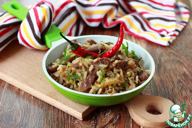 Посыпьте рис с капустой хлопьями перца чили и подавайте на стол.