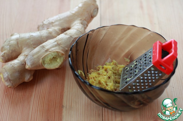 Пока варится рис, нашинкуйте тонко капусту, нарежьте зеленый лук и натрите на терке корень имбиря.
