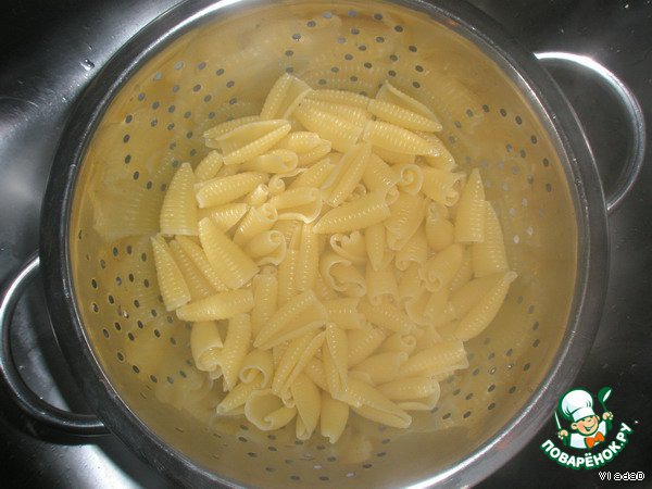Параллельно отвариваем макароны согласно инструкции на упаковке. Я выбрала вот такие.