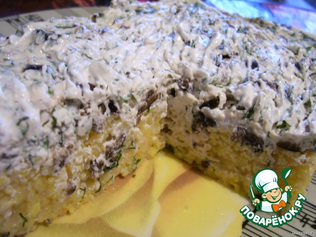 Выкладываем сыр на поленту сверху, и отправляем в разогретую духовку минут на 10.