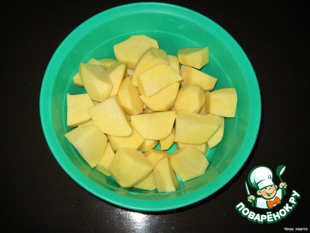 Картофель очистить, помыть, крупные клубни разрезать пополам.