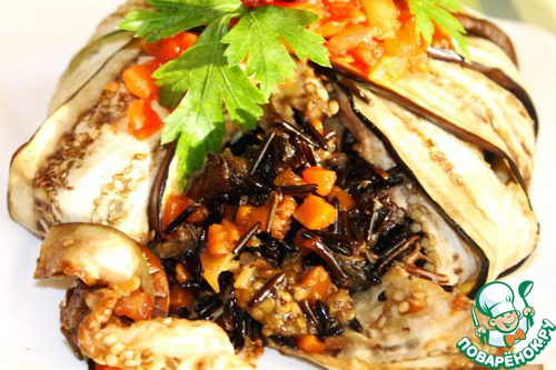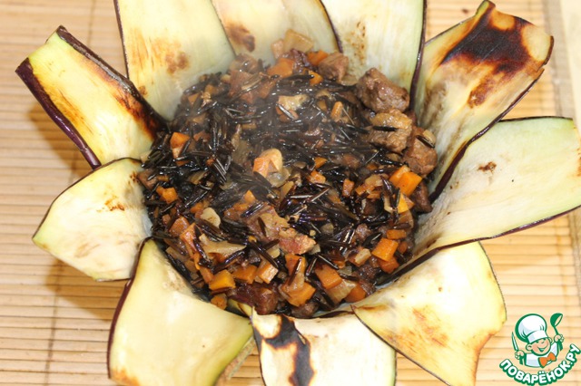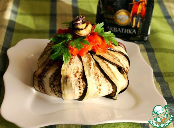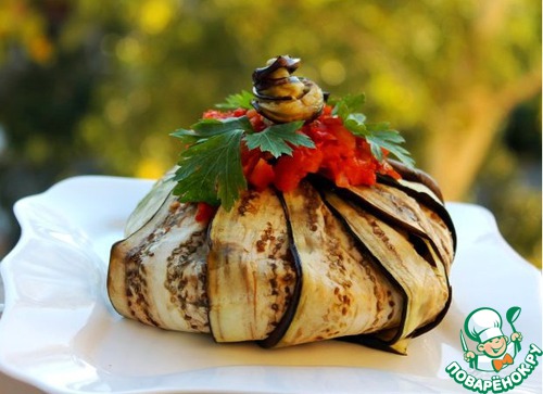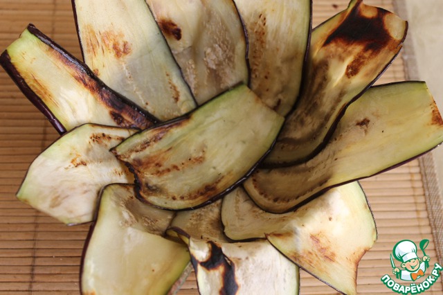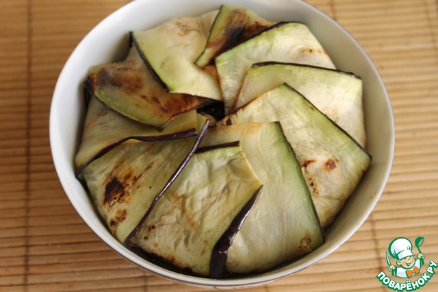 Я готовила порционную подачу, взяла пиалку, выложила ее лепестками баклажана, чтобы они свисали
