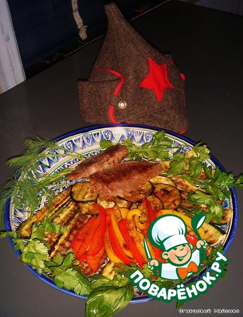 Готовое филе выкладываем на блюдо к овощам, которые должны к этому времени подстыть. Посыпаем всё паприкой и украшаем зеленью.