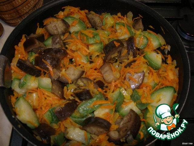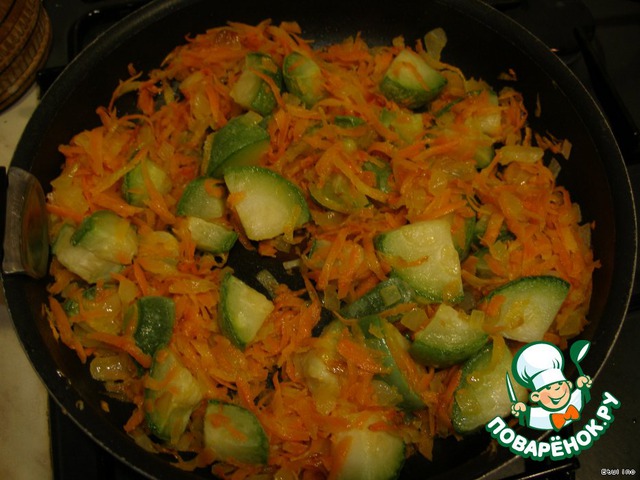 А затем в сковороду отправлялось все то, что находилось в морозилке: кабачки,