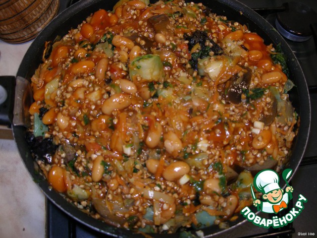 Потом на глаза попалась баночка фасоли - и тоже отправилась в сковородку.