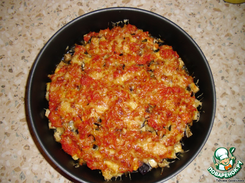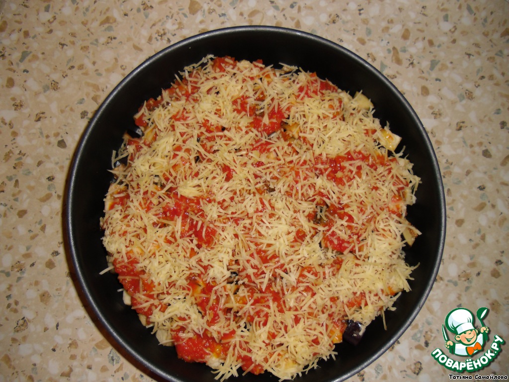 Посыпать тертым сыром и поставить в разогретую духовку на 30-40 минут.