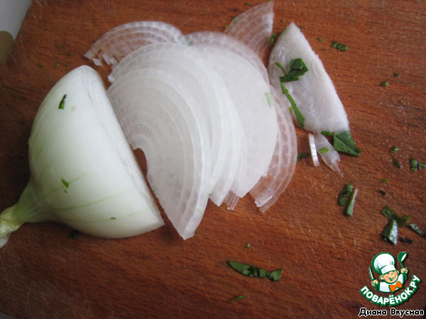нарезать полукольцами луковицу и обжарить на растительном масле
