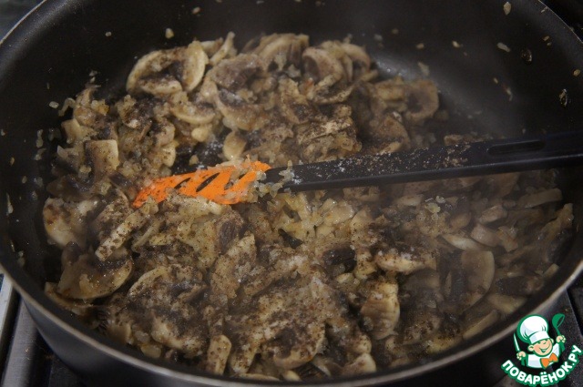 Посолить и поперчить. Начинку отставить в сторонку остывать.