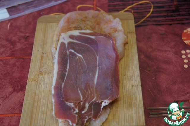 Для своего блюда я взяла пршут, можно взять памскую ветчину или хамон. В крайнем случае - сырокопченый бекон.